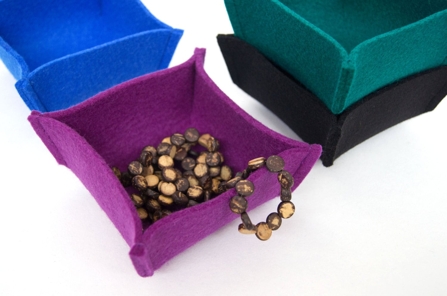 These felt bowls are made from 3/4 mm thick wool felt and carefully sewn together. The baskets can be used in a variety of ways: